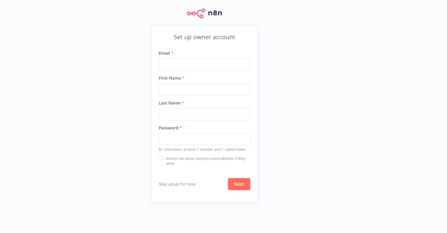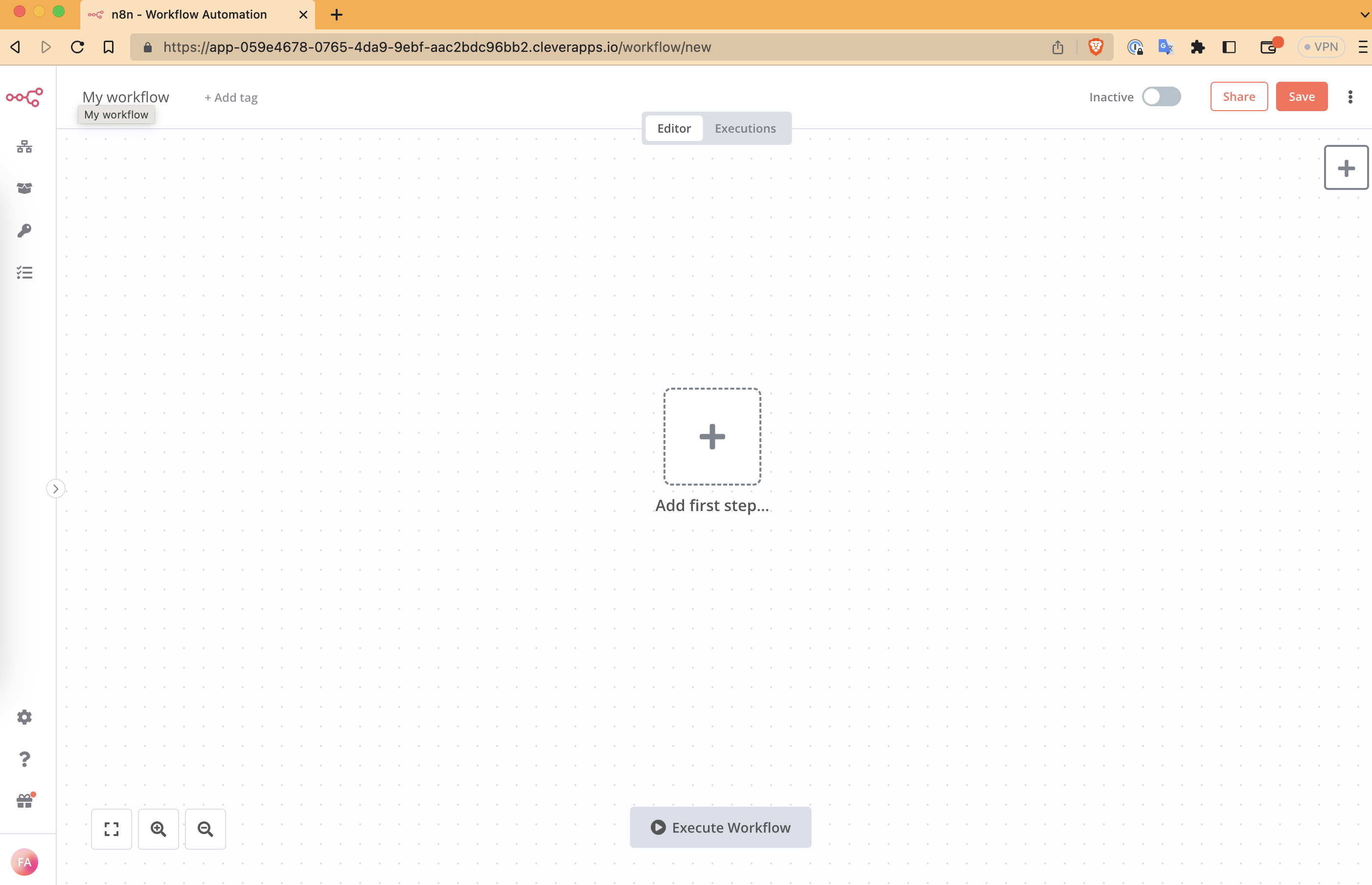 Créez votre compte n8n et vous devriez arriver sur cet écran: