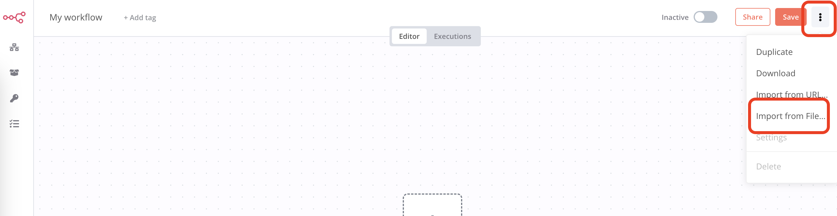 Import du workflow dans n8n