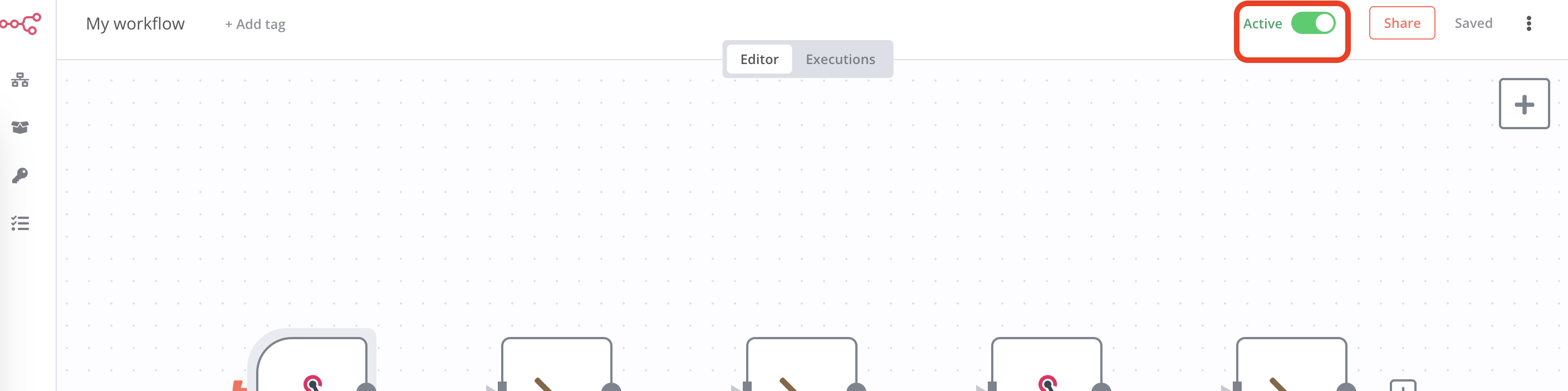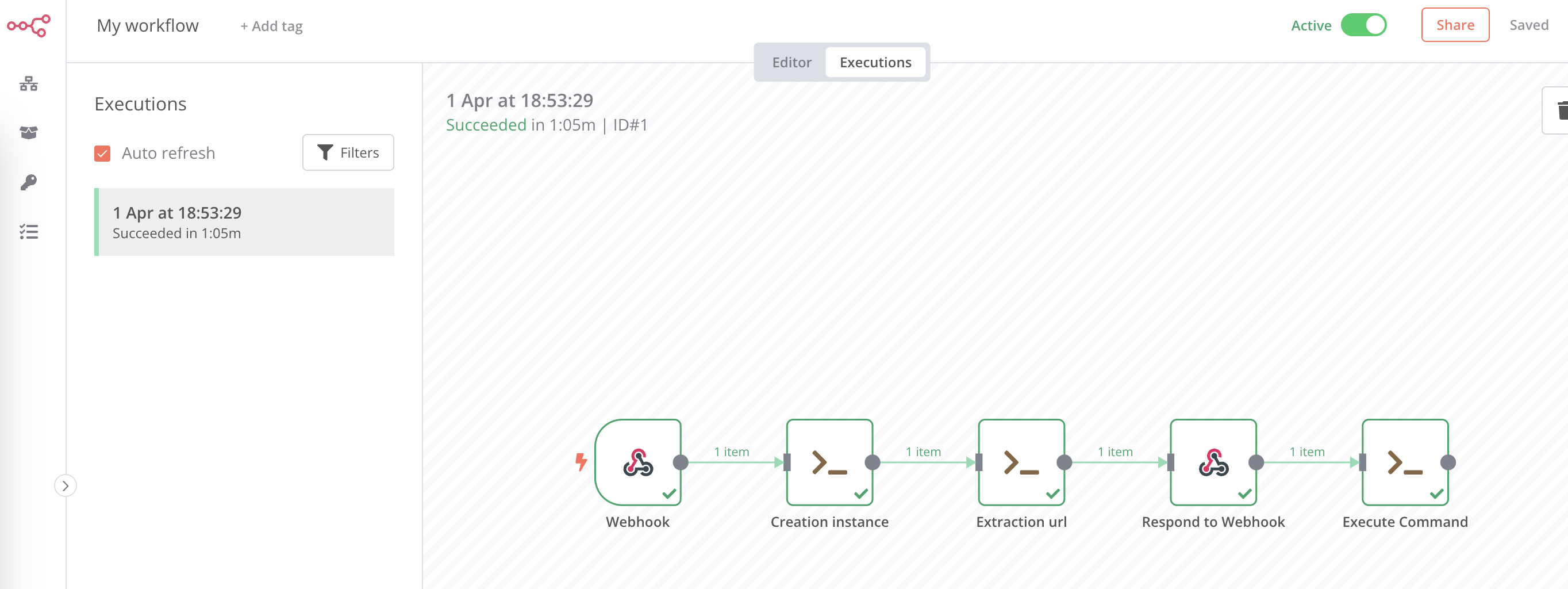 Cliquez sur le bouton “Active” afin d’activer ce workflow dans n8n